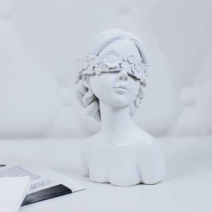 Бюст для украшений «Девушка в цветах», анфас, 9,5×7,5×14 см, цвет белый