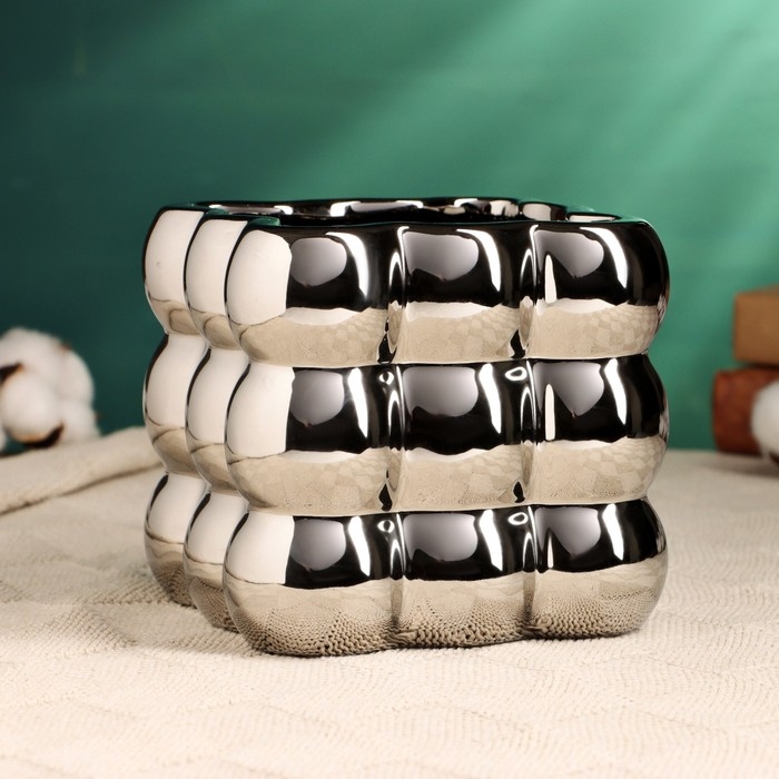 Кашпо - ваза "Люмьер" серебро, 13х13см