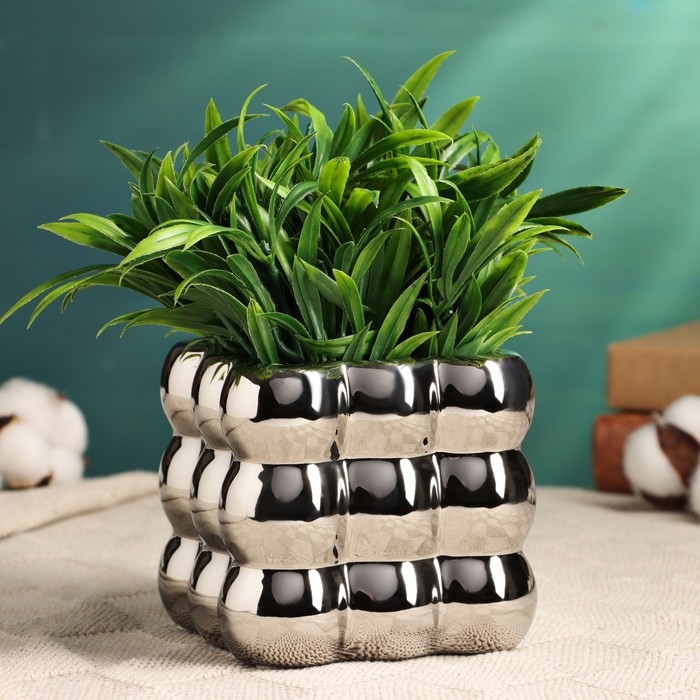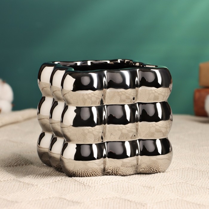 Кашпо - ваза "Люмьер" серебро, 10х10см