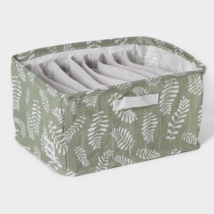 Органайзер для хранения белья Доляна Leaves, 9 ячеек, 25×33×16 см, цвет зелёный