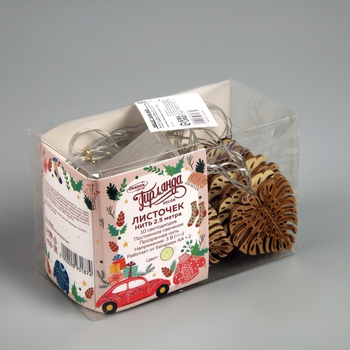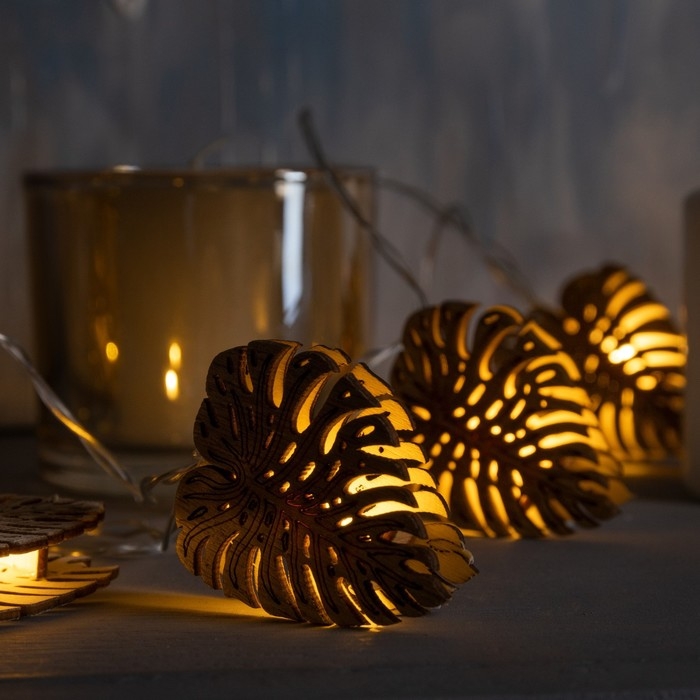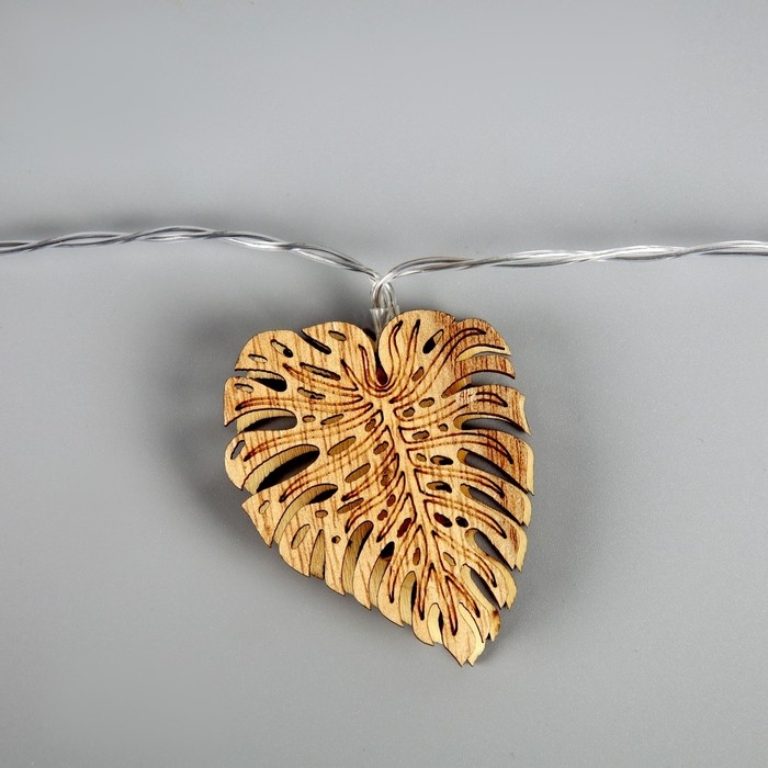 Гирлянда «Нить» 2.5 м с насадками «Листочек», IP20, прозрачная нить, 10 LED, батарейки AAх2 (нет в комплекте), свечение тёплое белое