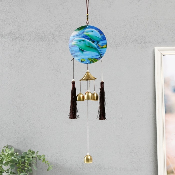 Музыка ветра металл "Дельфины" 4 колокольчика 52х12,5х2,7 см