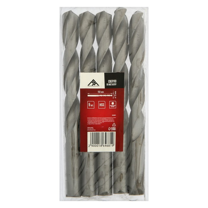 Сверло по металлу ЛОМ, HSS, цилиндрический хвостовик, 13 х 150 мм, 5 шт.