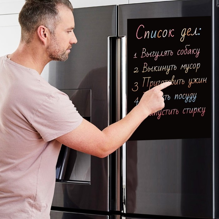Самоклеящийся магнитный винил быстро приклеивается и надежно удерживается на любой ровной и гладкой поверхности. Магнитный винил широко используется дома и в офисах, в школах и детских садах, в поликлиниках и больницах. Это идеальный инструмент для рисования, заметок, напоминаний, для важных записей, пожеланий или переписок со своими домочадцами, для рецептов, подсчёта калорий и продуктов, необходимых купить в магазине.