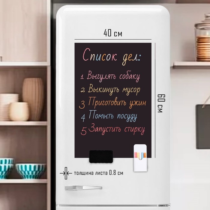 Магнитный винил, с мелками, 60 х 40 см, толщина 0.8 мм