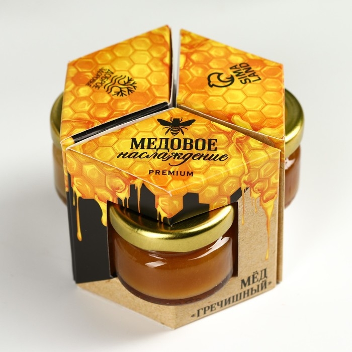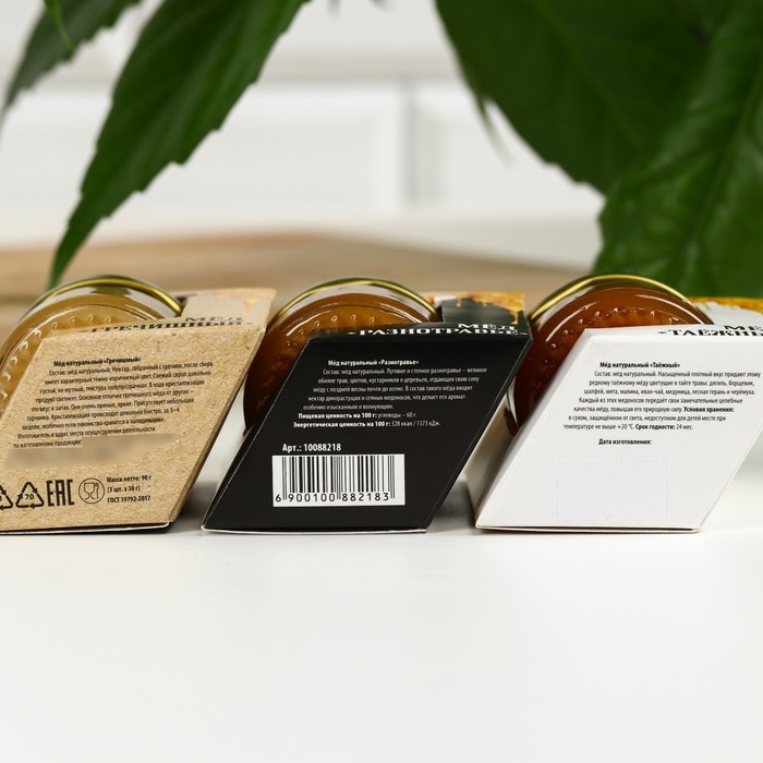 Набор «Медовое наслаждение»: мёд гречишный, мёд разнотравье, мёд таёжный, 3 шт. х 30 г.