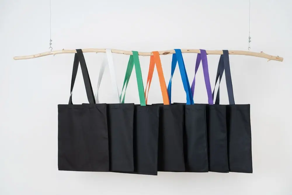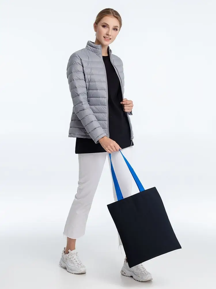 Холщовая сумка BrighTone, черная с ярко-синими ручками
