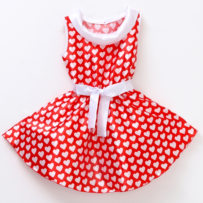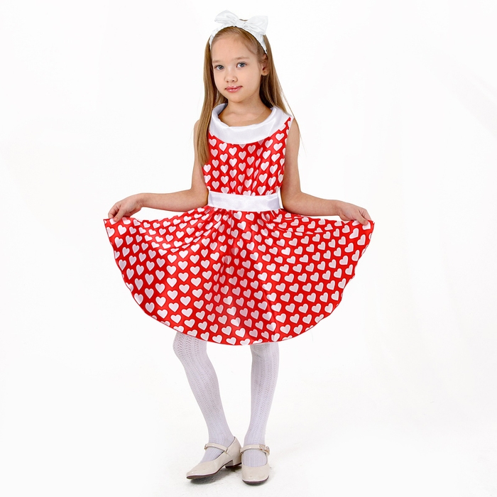 Карнавальный костюм «Стиляги» платье красное с белыми сердцами, повязка р-р 36 рост 140 см