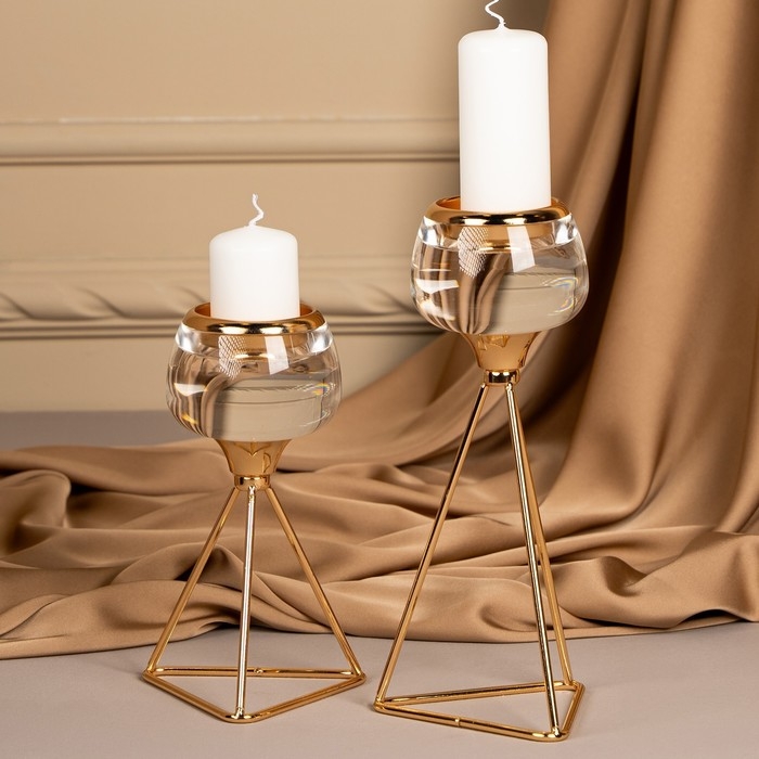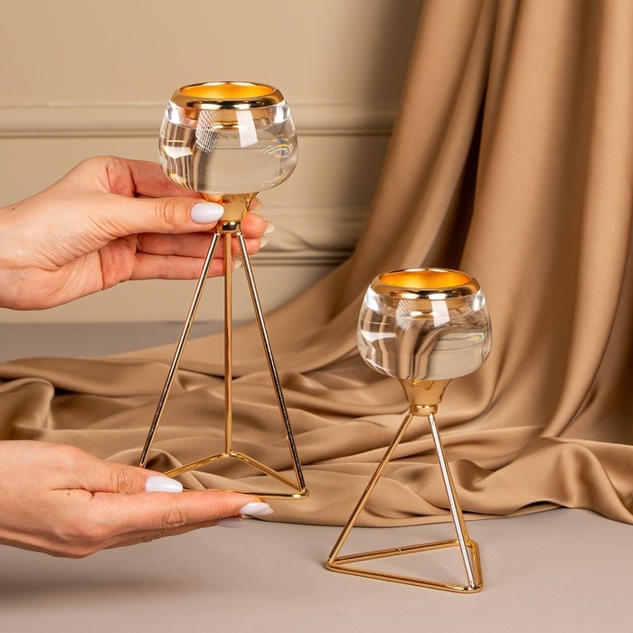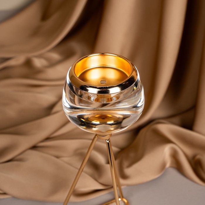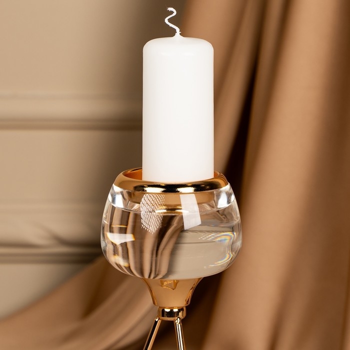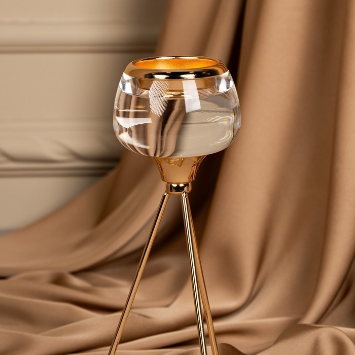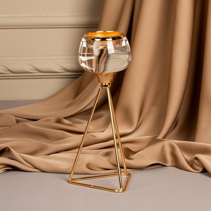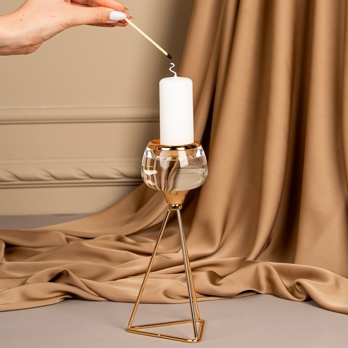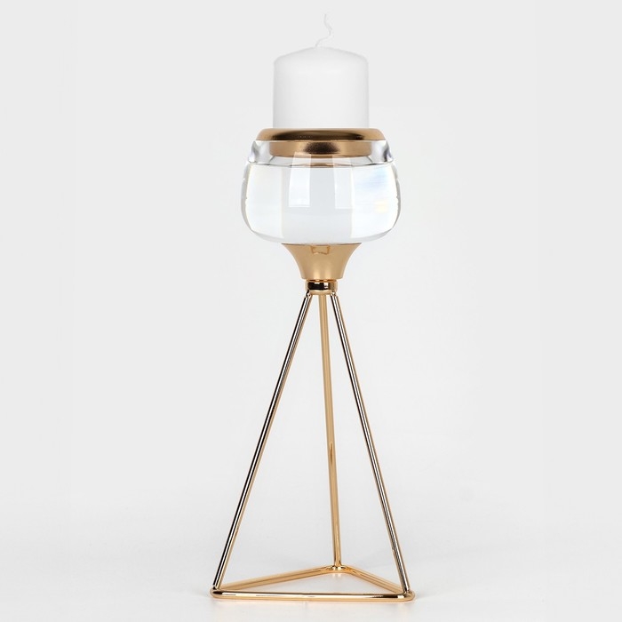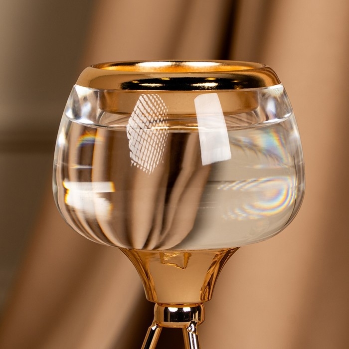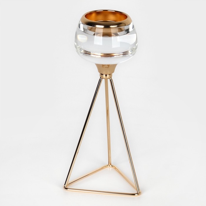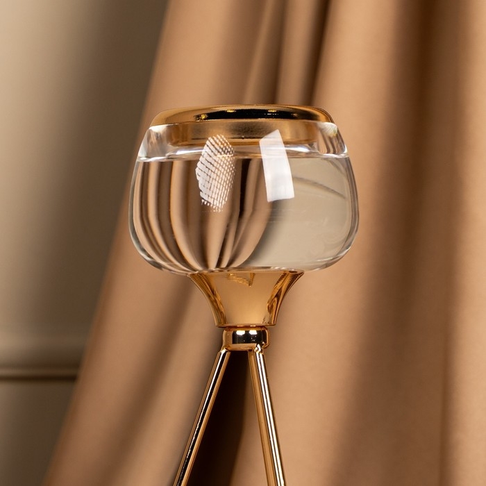 Подсвечник металл, стекло на 1 свечу «Изысканность» цвет золото 9.5 х 9.5 х 22.5 см