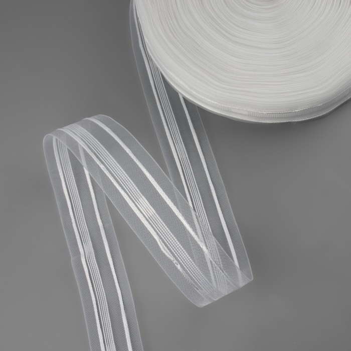 Шторная лента классическая, органза, 2,5 см, 100 ± 1 м, цвет прозрачный/белый