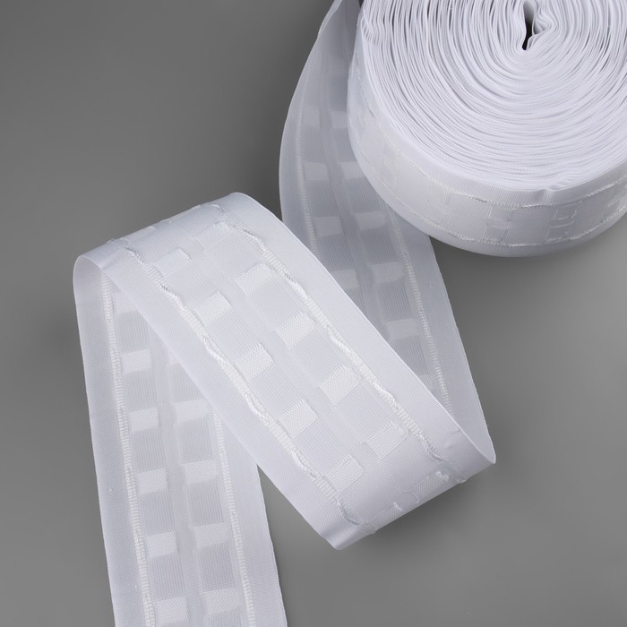 Шторная лента классическая, органза, 6 см, 50 ± 1 м, цвет прозрачный/белый