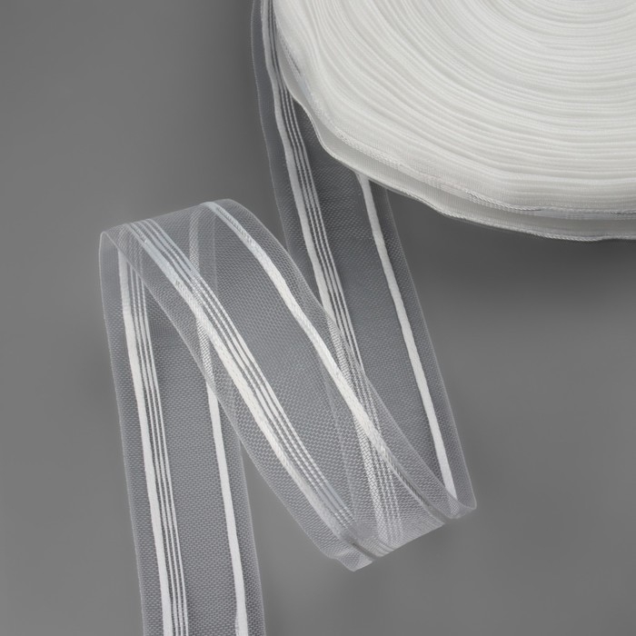 Шторная лента классическая, органза, 2,5 см, 100 ± 1 м, цвет прозрачный/белый