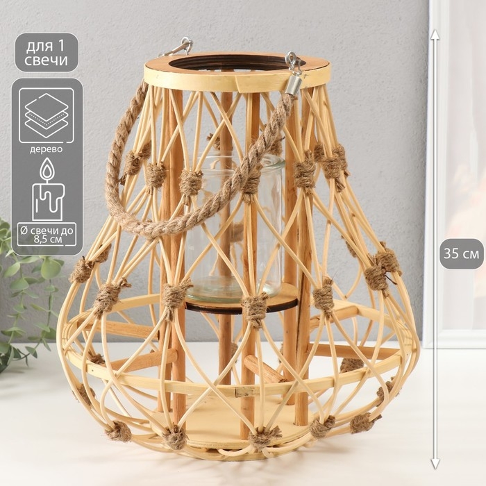 Подсвечник дерево на 1 свечу "Лоза с узелками" натуральный 16х33х35 см