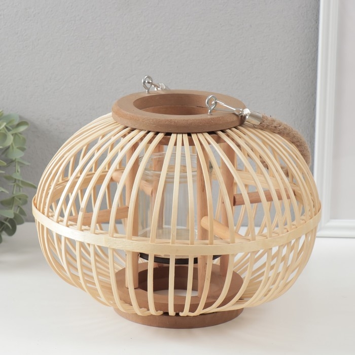 Подсвечник дерево на 1 свечу "Шар из лозы" натуральный" 13х28х20 см
