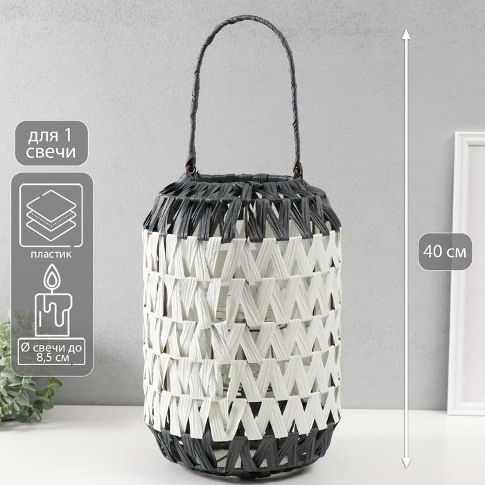 Подсвечник пластик на 1 свечу "Зигзаг" чёрно-белый 14х26х40 см