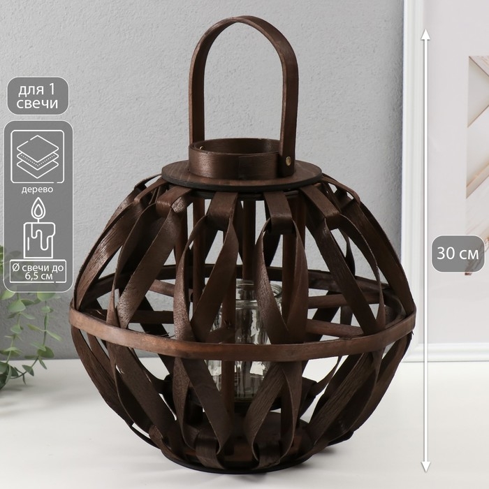 Подсвечник дерево на 1 свечу "Петельки" тёмно-коричневый 10х34х30 см