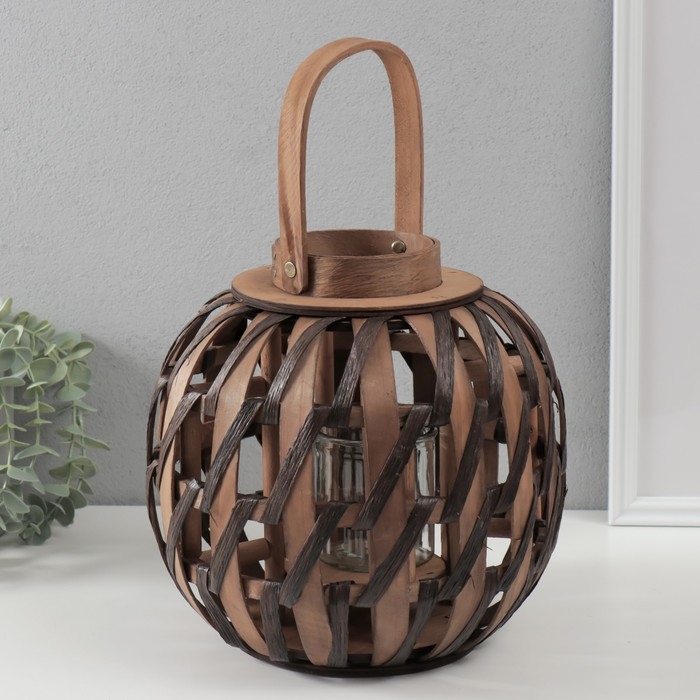 Подсвечник дерево на 1 свечу "Плетение" бежево-коричневый 10х24х24 см