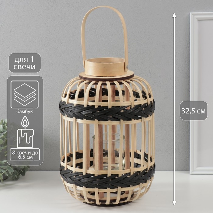 Подсвечник бамбук "Фонарик. Вертикаль" 32,5х23,5х23,5 см