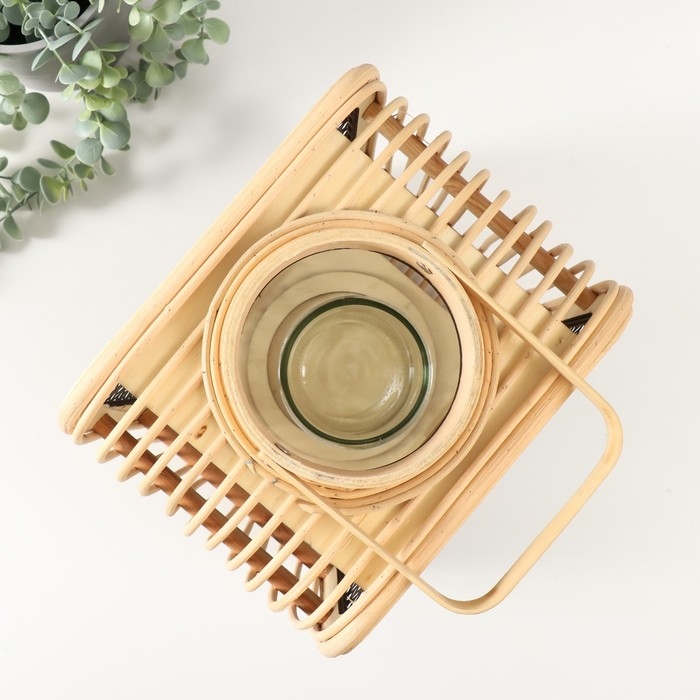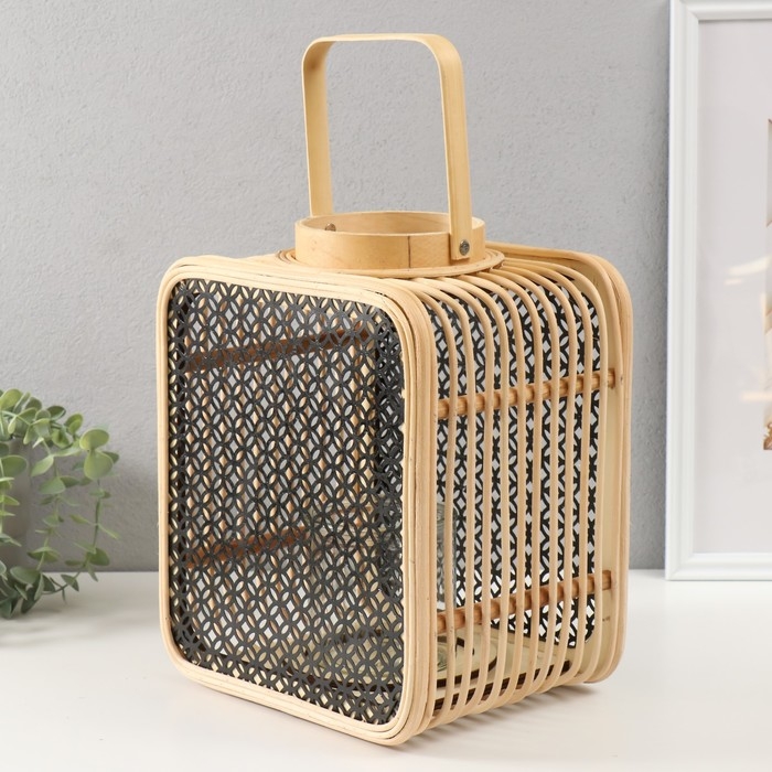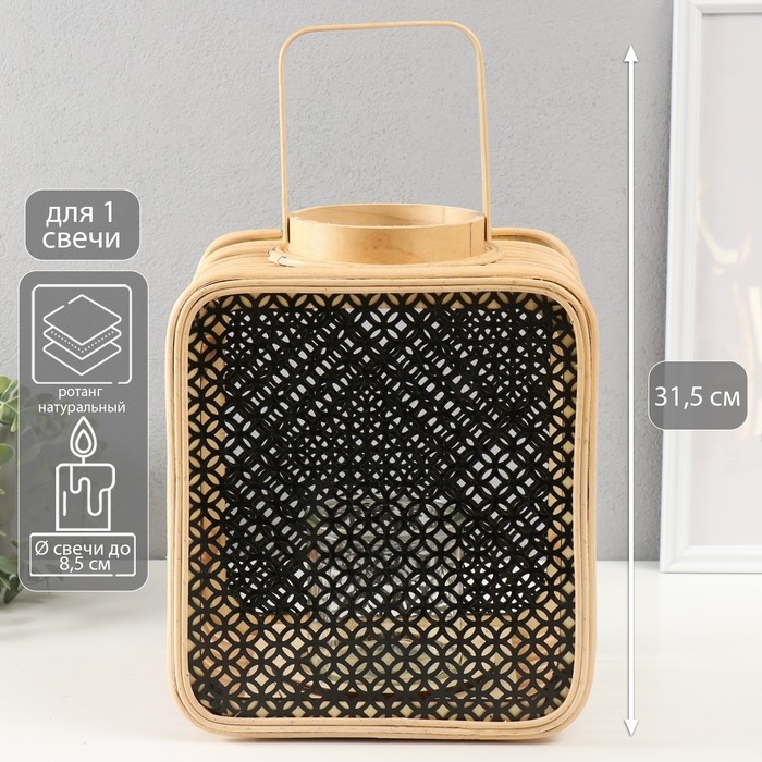 Подсвечник ротанг, металл "Фонарик. Сеточка. Прямоугольный" 31,5х24,5х19 см