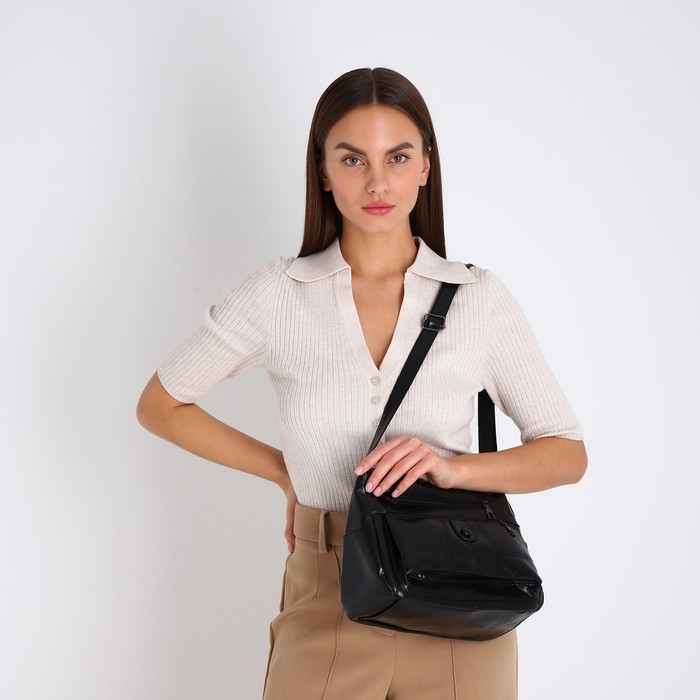 Сумка женская на одно плечо, на молнии, цвет чёрный