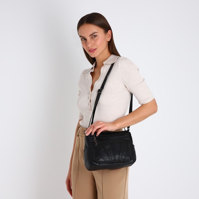 Сумка женская на одно плечо, на молнии, цвет чёрный