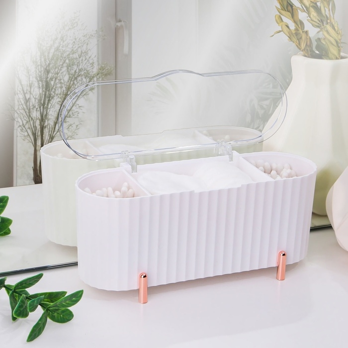 Органайзер для хранения, с крышкой, 3 секции, 21 × 8 × 9 см, цвет белый/розовое-золото