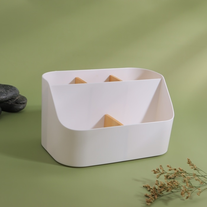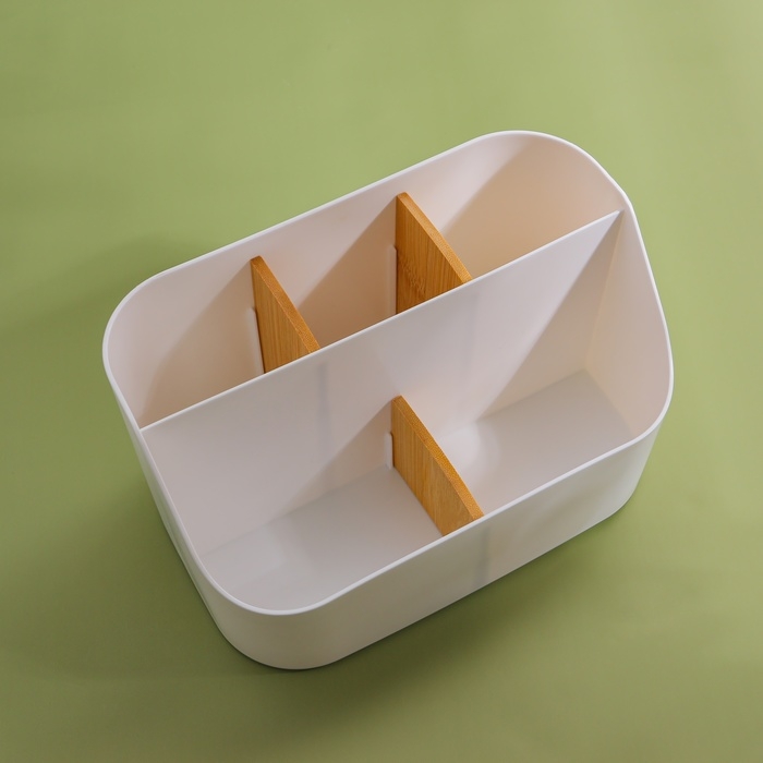 Органайзер для хранения «BAMBOO», 5 секций, передвижные секции, 18,5 × 11,5 × 10,6 см, цвет белый