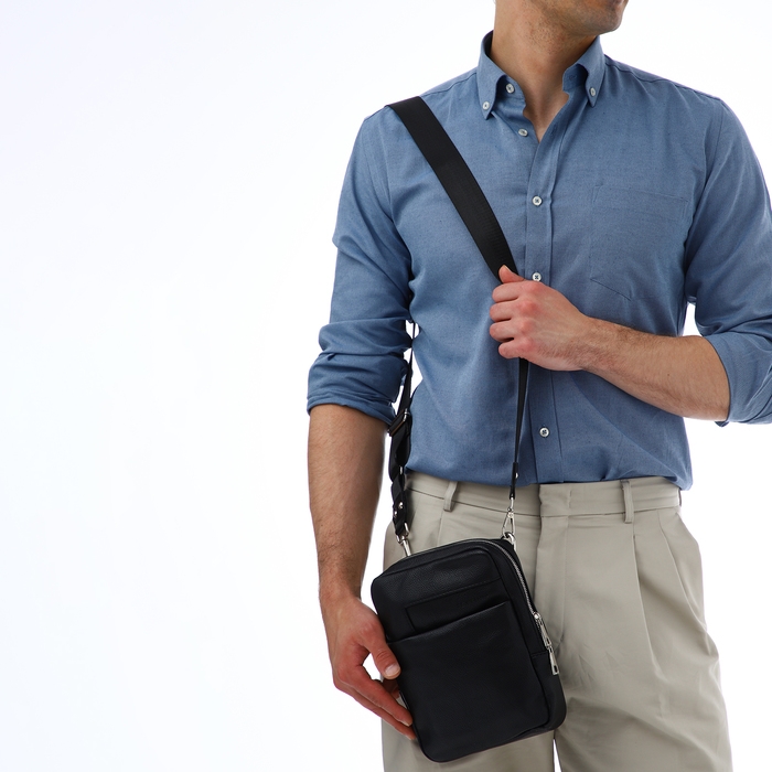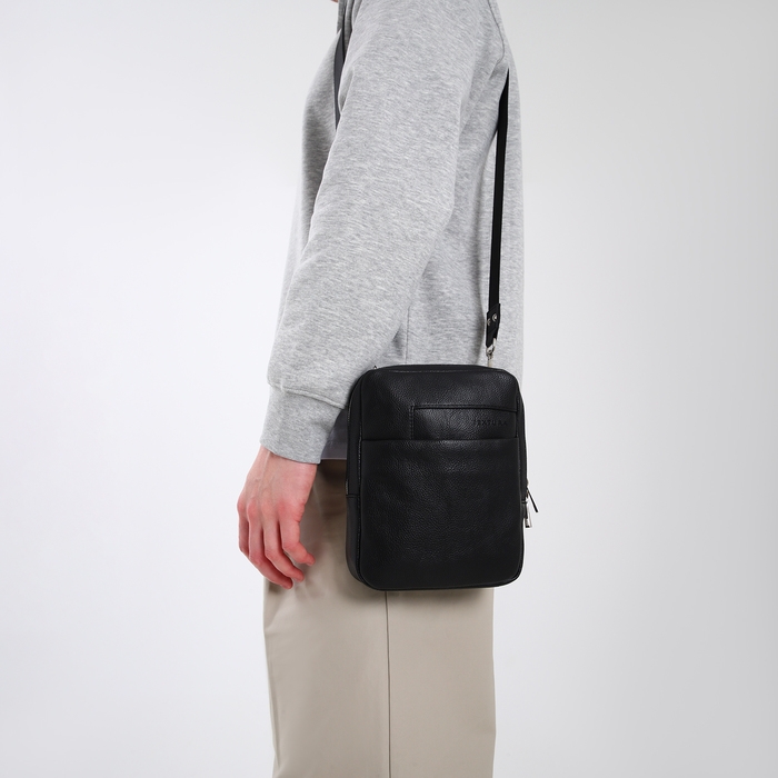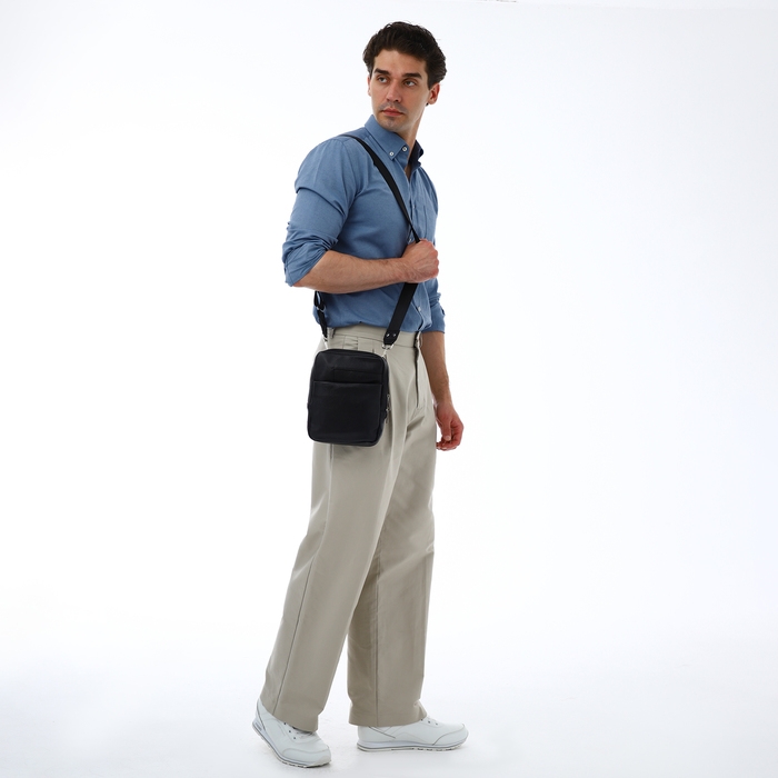 Сумка мужская через плечо TEXTURA, искусственная кожа, цвет чёрный