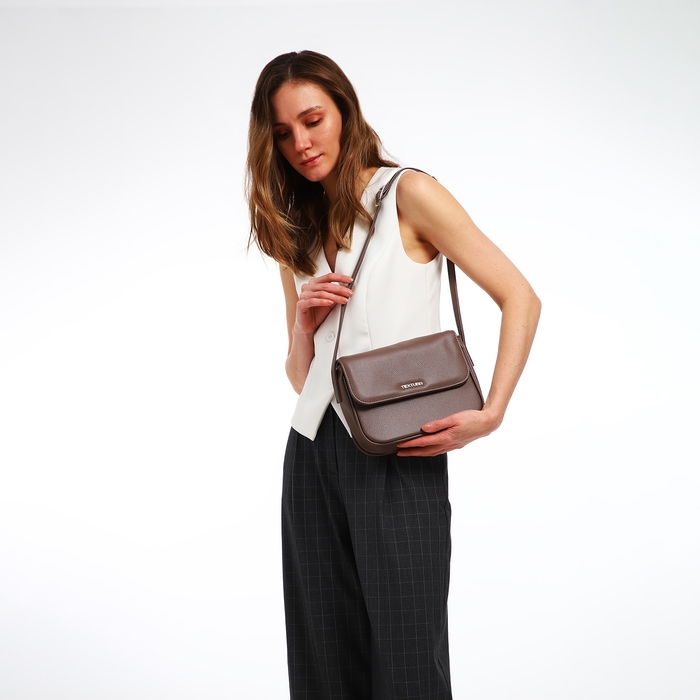 Сумка женская на клапане TEXTURA, маленький размер, цвет тёмно-серый