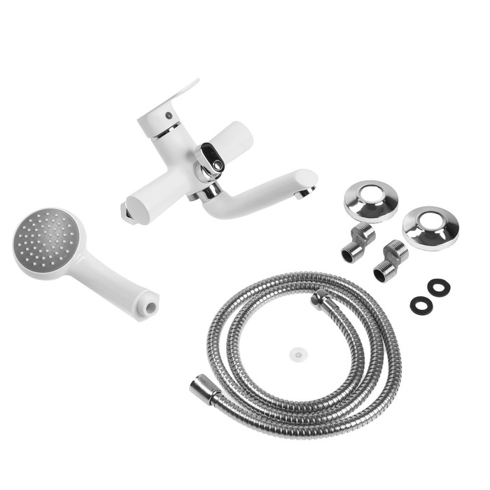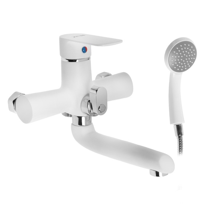 Смеситель для ванны ZEIN Z2746, излив 13 см, картридж 35 мм, с душевым набором, белый