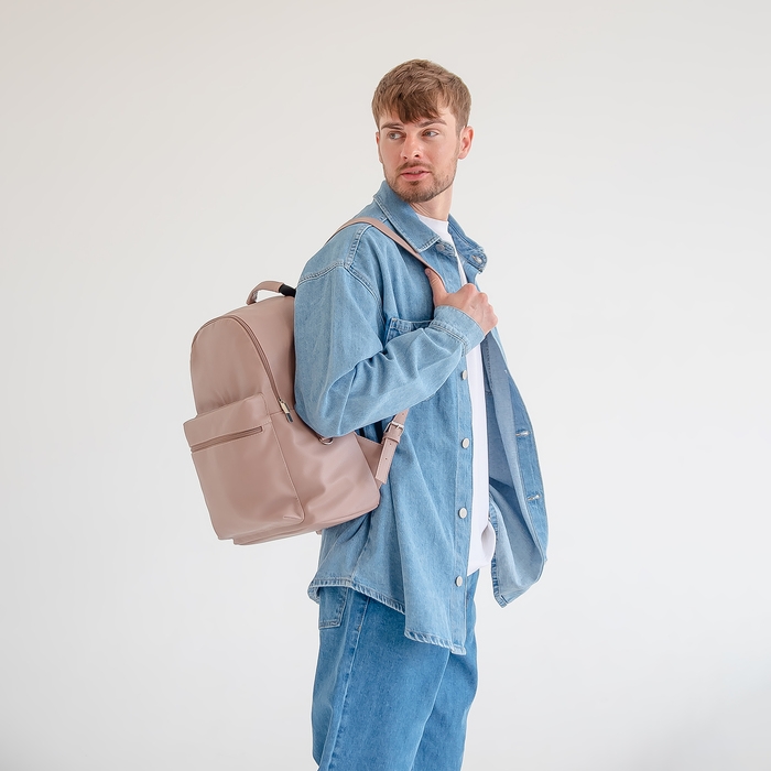 Рюкзак городской TEXTURA из экокожи на молнии, наружный карман, цвет бежевый