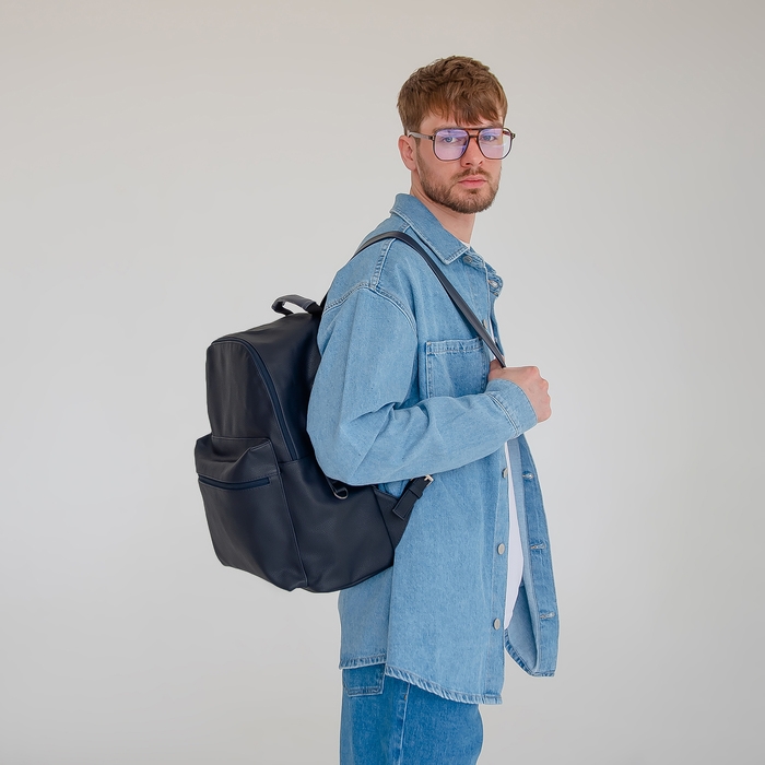 Рюкзак городской TEXTURA из искусственной кожи на молнии, наружный карман, цвет тёмно-синий