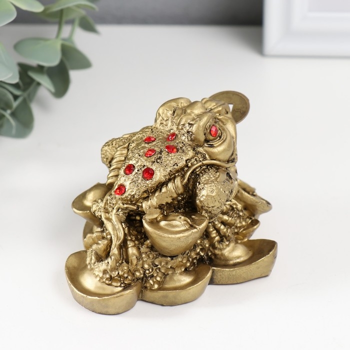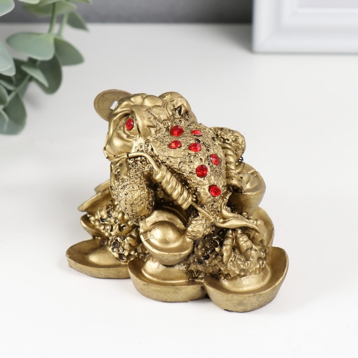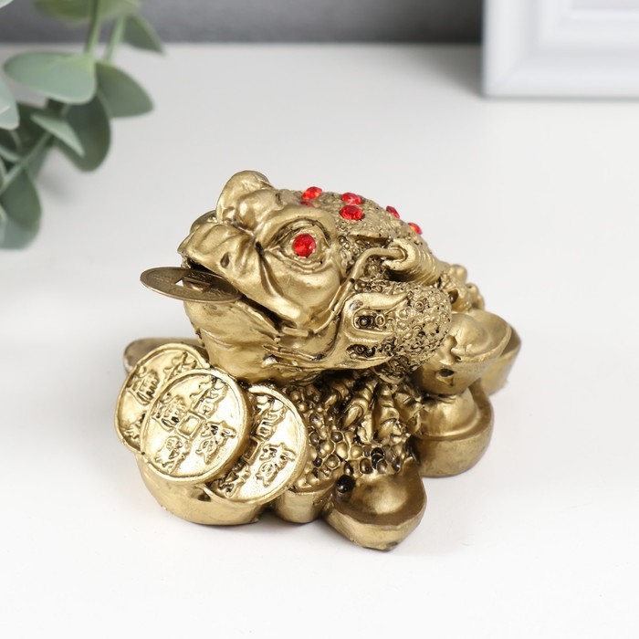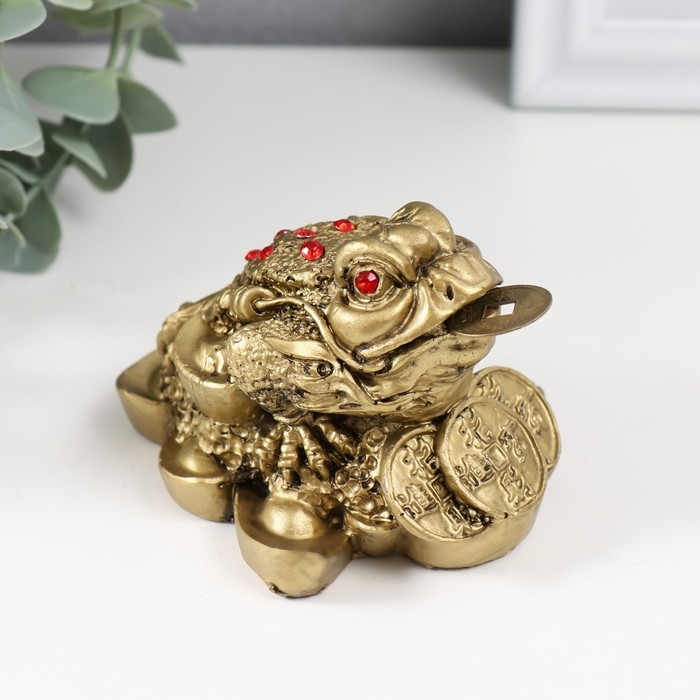Нэцке полистоун под бронзу "Денежная жаба с тремя монетами" 8,4х7х5,3 см