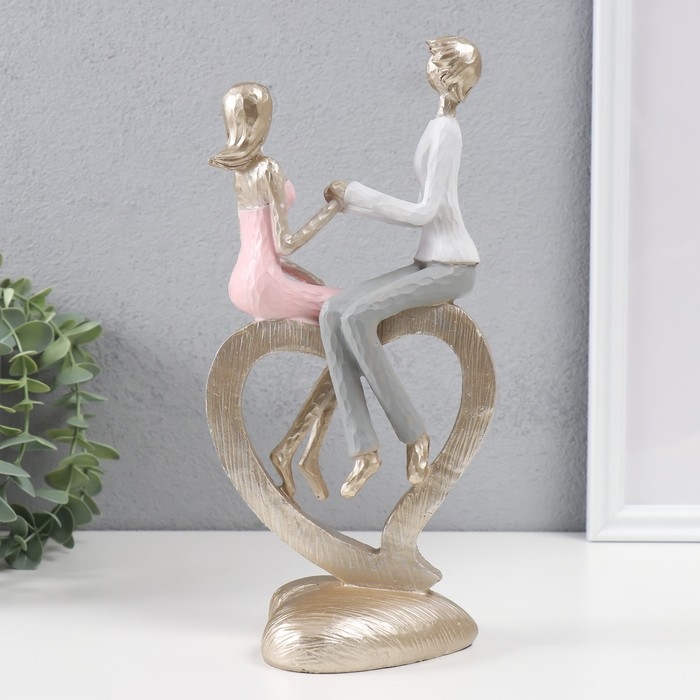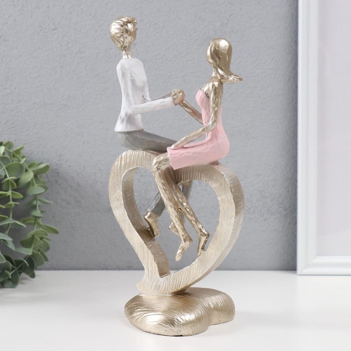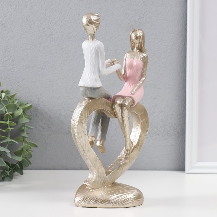 Сувенир полистоун "Влюблённая пара сидит на сердце" 13х10,5х27 см