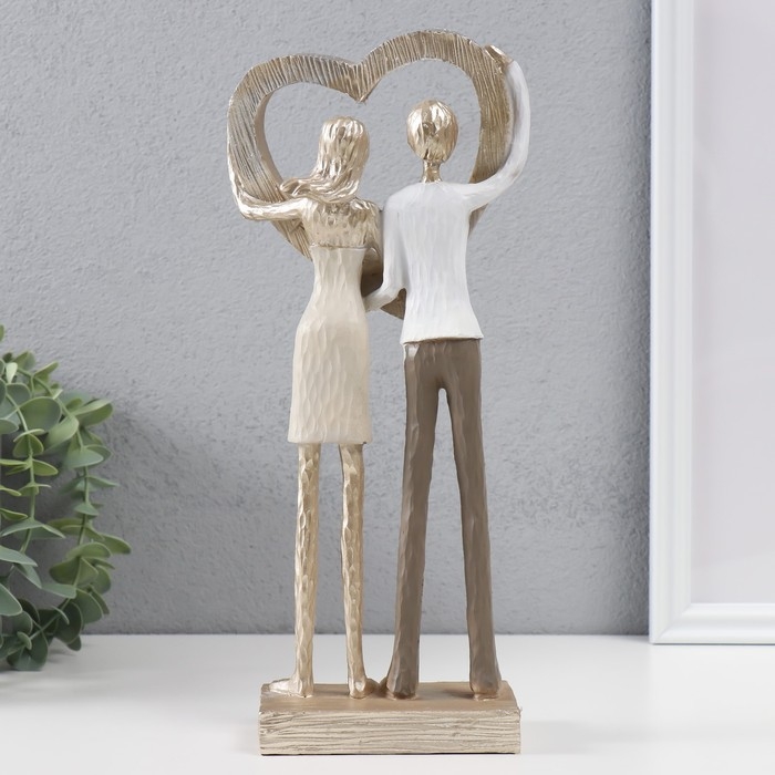 Сувенир полистоун "Влюблённые с большим золотым сердцем" 12,5х8х29,5 см