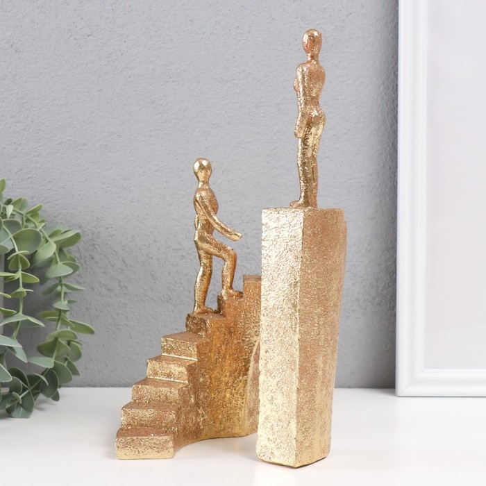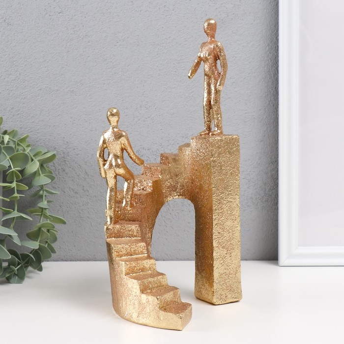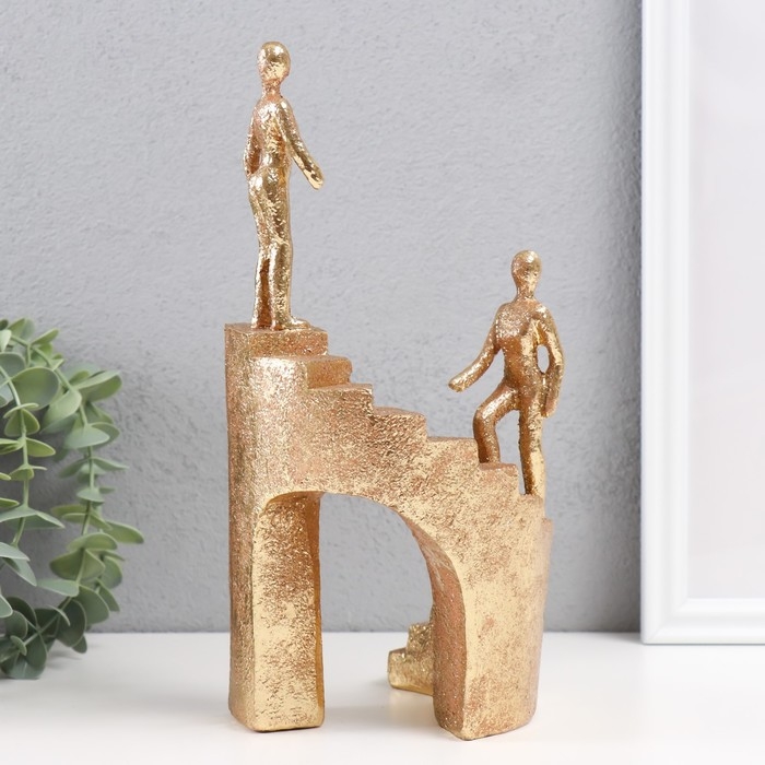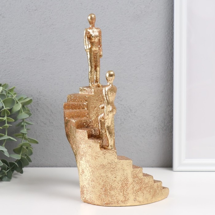 Сувенир полистоун "Двое на лестнице" золото 13,5х10,5х25,5 см