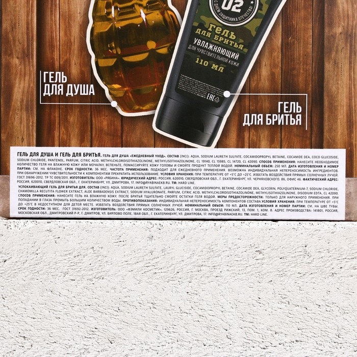 Подарочный набор косметики «Сильному духом», гель для душа 250 мл и гель для бритья 110 мл, HARD LINE