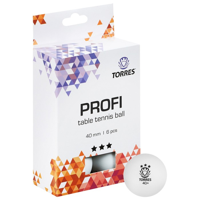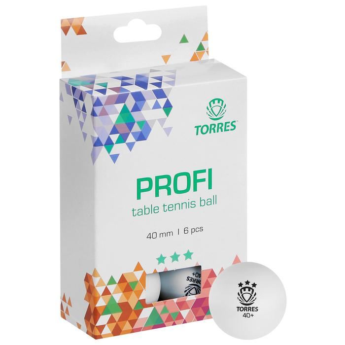 Мяч для настольного тенниса TORRES Profi, 3 звезды, 40 мм, 6 шт., цвет белый