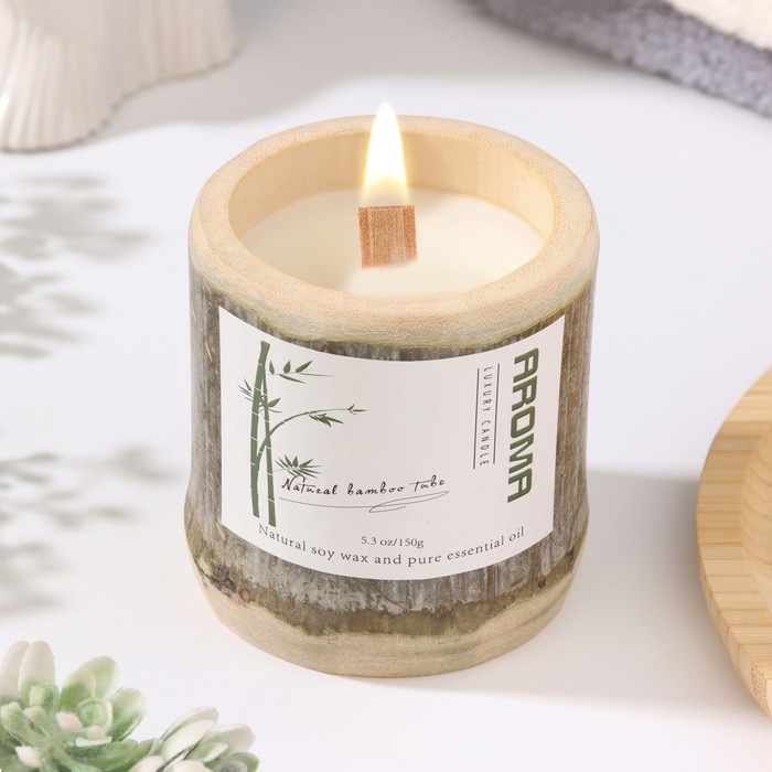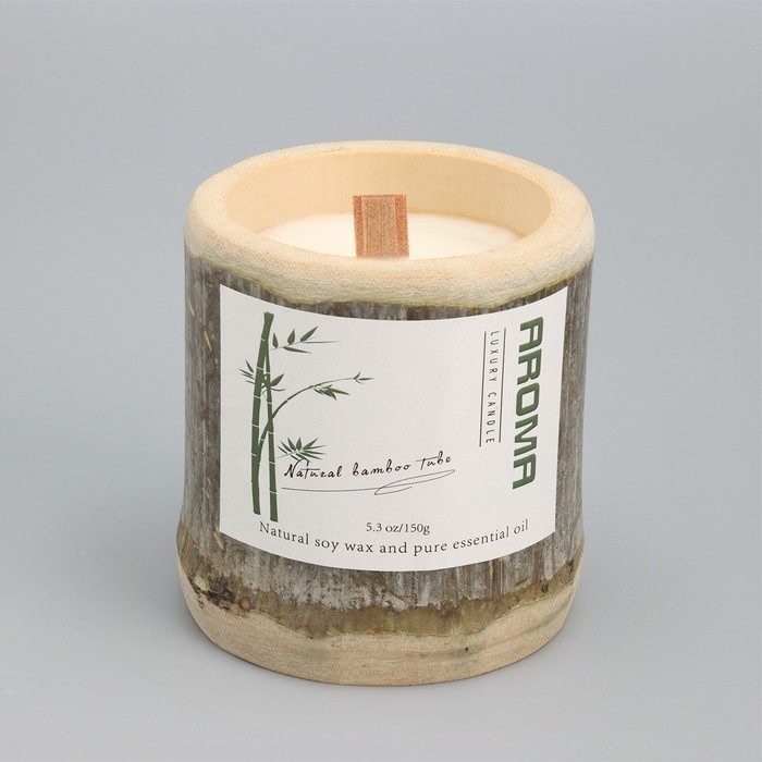 Свеча ароматическая в бамбуке "Кунулун", соевый воск, 25ч, 150 гр, 8,5х8 см