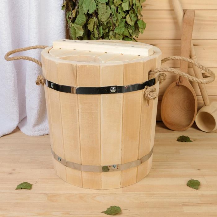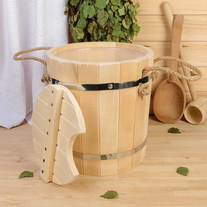 Запарник из липы, 9л, пластиковая вставка, с крышкой, "Добропаровъ"