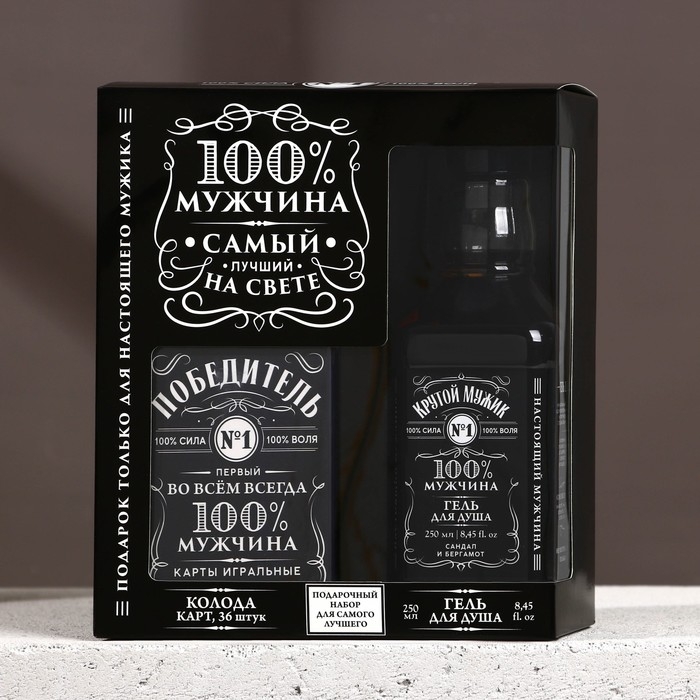 Новогодний подарочный набор косметики «100% мужчина», гель для душа во флаконе виски 250 мл и игральные карты , Новый Год