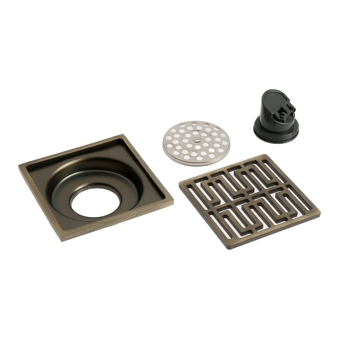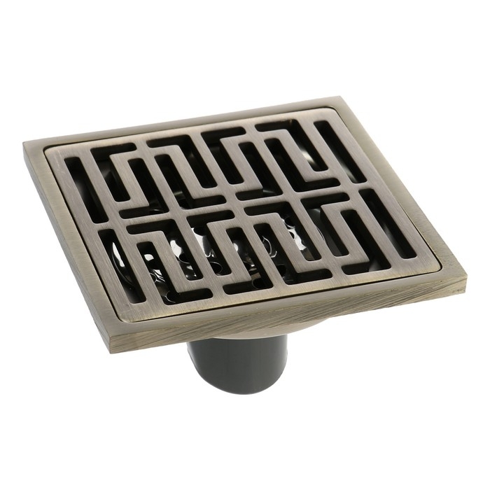 Трап ZEIN, 100х100 мм, вертикальный, d=32 мм, нержавеющая сталь, античная бронза