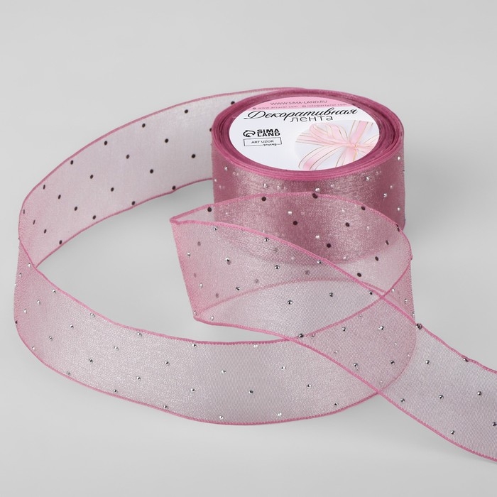Лента капроновая, со стразами, 38 мм × 9,1 ± 0,5 м, цвет пудровый