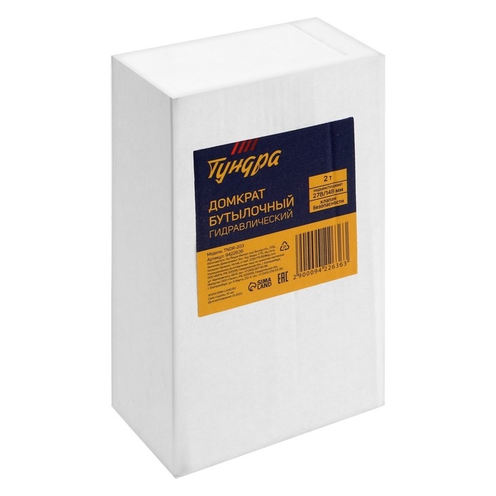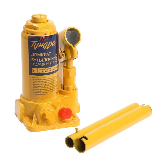 Домкрат бутылочный гидравлический ТУНДРА, второй клапан, подъем/подхват 278/148 мм, 2 т