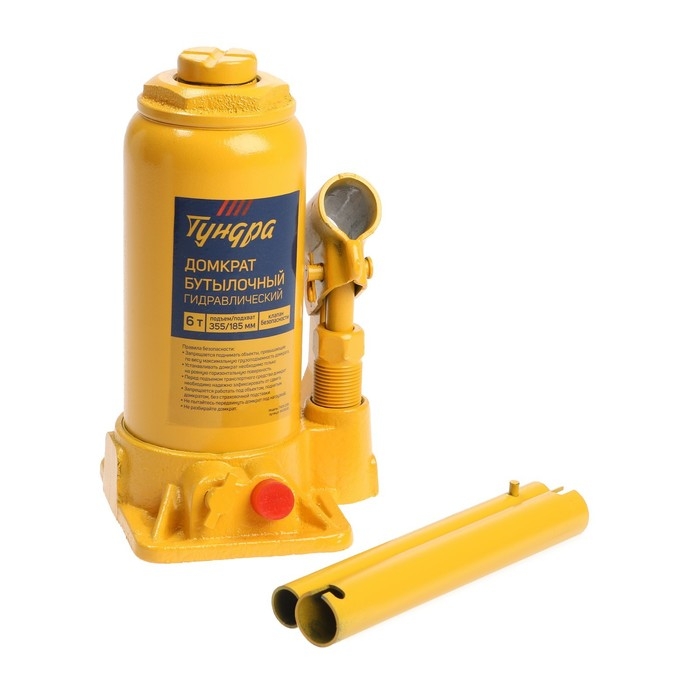Домкрат бутылочный гидравлический ТУНДРА, второй клапан, подъем/подхват 355/185 мм, 6 т