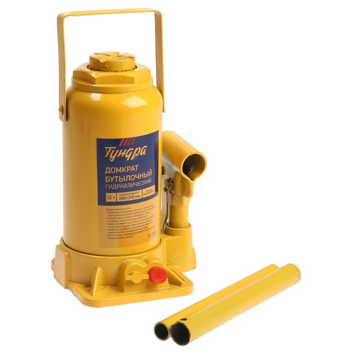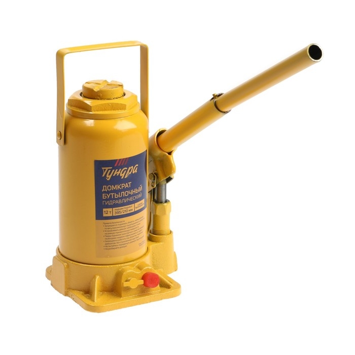 Домкрат бутылочный гидравлический ТУНДРА, второй клапан, подъем/подхват 395/210 мм, 12 т