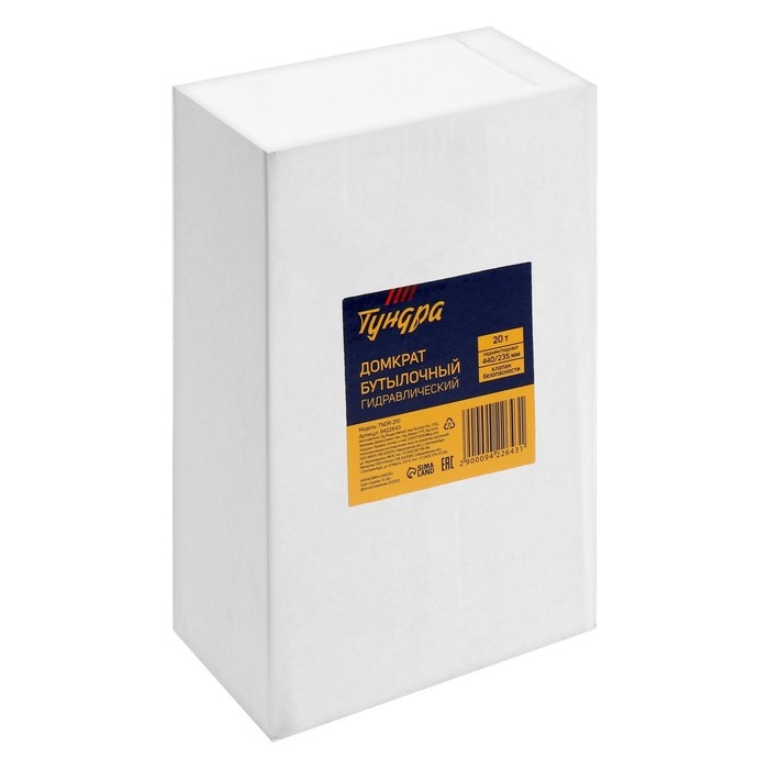 Домкрат бутылочный гидравлический ТУНДРА, второй клапан, подъем/подхват 440/235 мм, 20 т