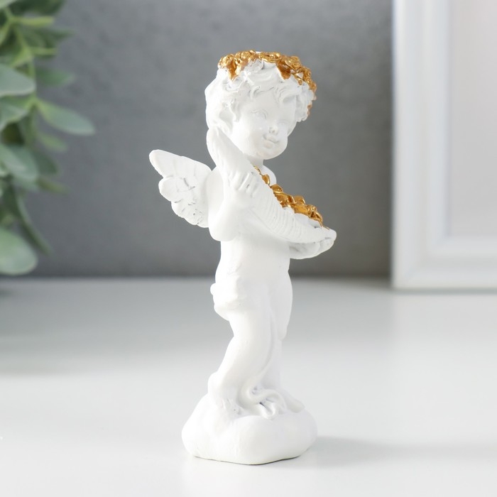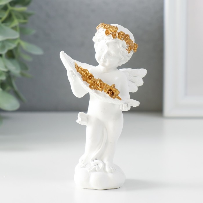 Сувенир полистоун "Белоснежный ангел с золотыми розами в листе" 6х4х11 см