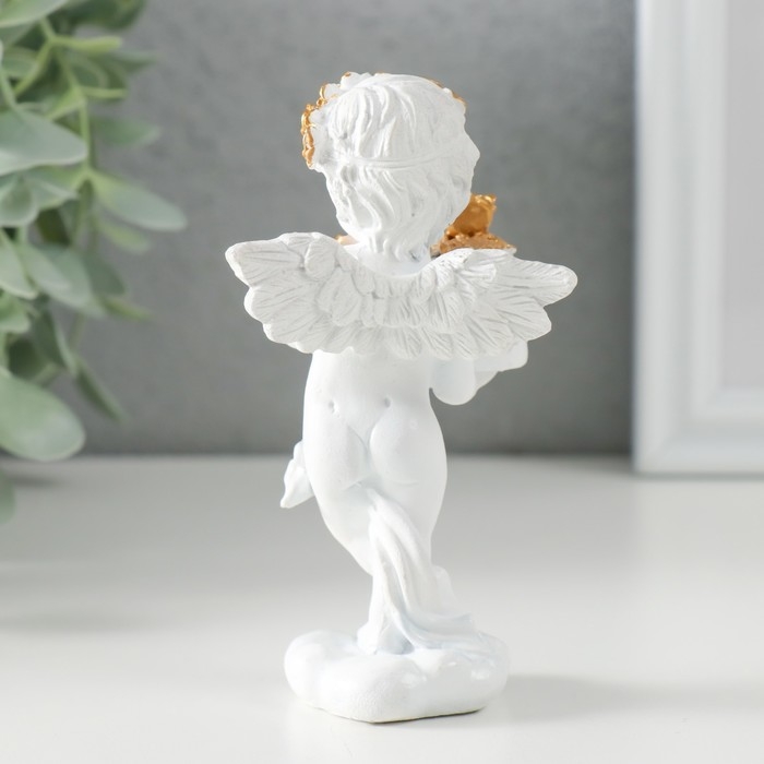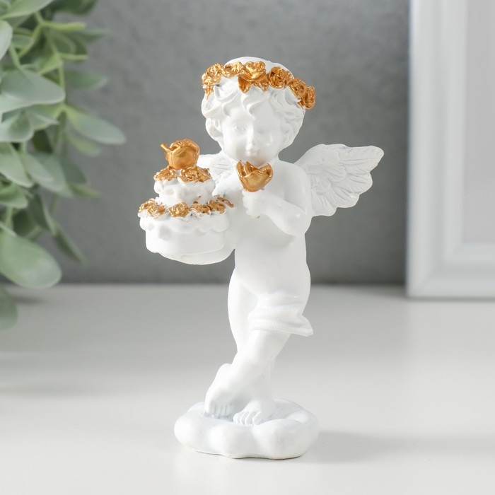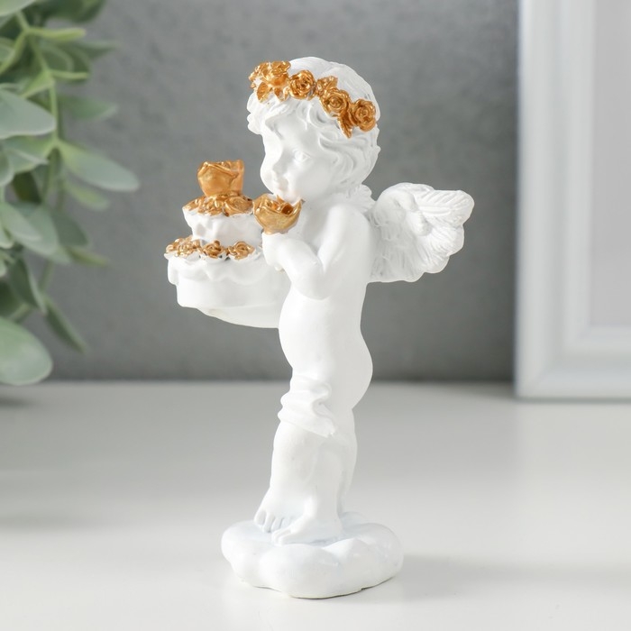 Сувенир полистоун "Белоснежный ангел с тортом украшенным розочками" 6х4,5х11 см