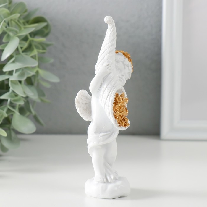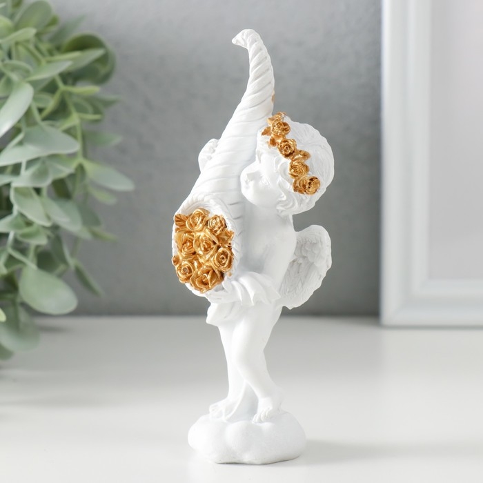 Сувенир полистоун "Белоснежный ангел с рогом с розами" 5,5х4,5х13,5 см